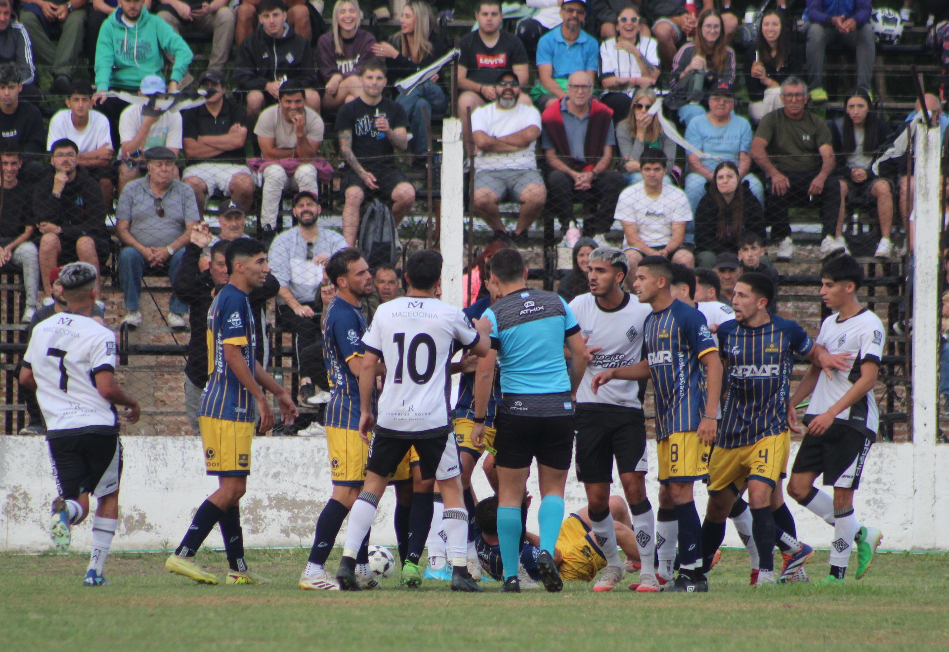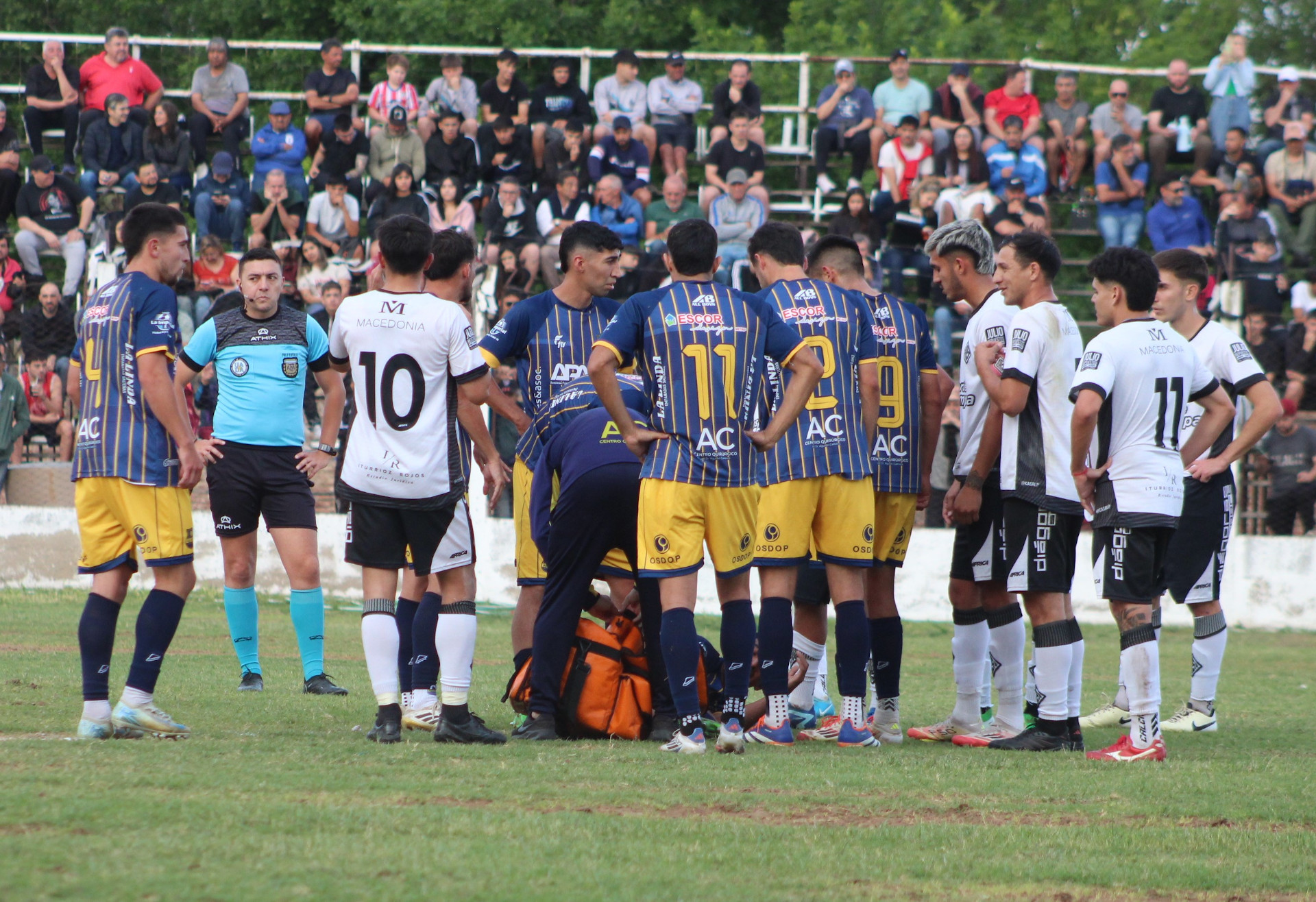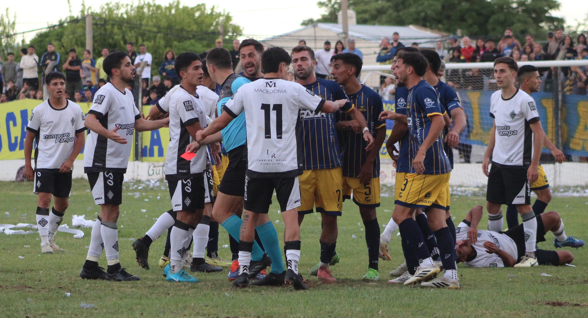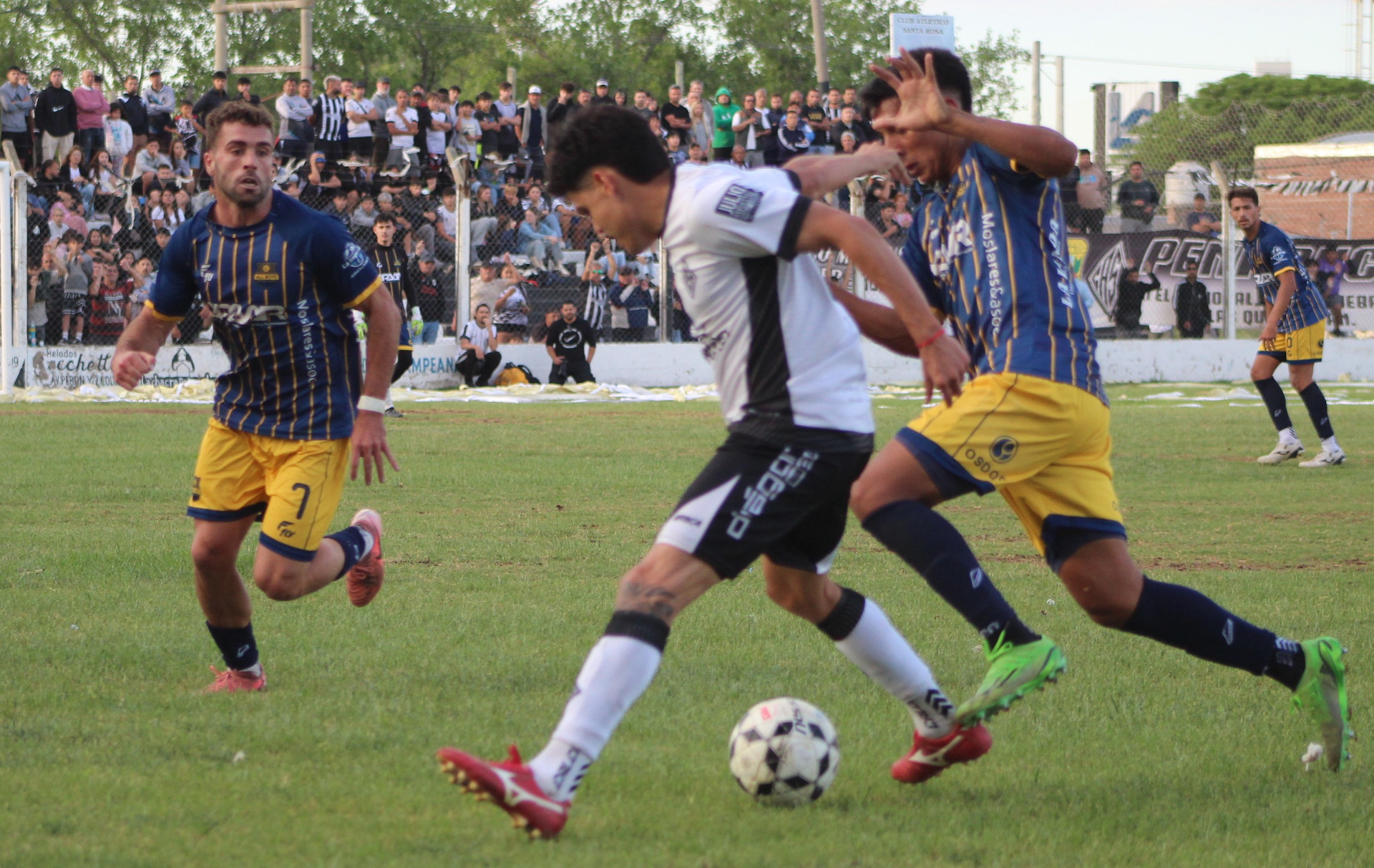 Un primer tiempo con nulas llegadas a los arcos, con mucha marca, dinámica y poco juego. A los 17 minutos de esa primera parte se originó un tumulto que terminó con la expulsión de Acosta en el Albo, por aplicar un puntapié en la cabeza de Nagore (confirmado por el árbitro), y allí, Santa Rosa debió multiplicarse para llevar las acciones ahí, cerca. Son cosas inentendibles que ocurren en una definición, nada menos.