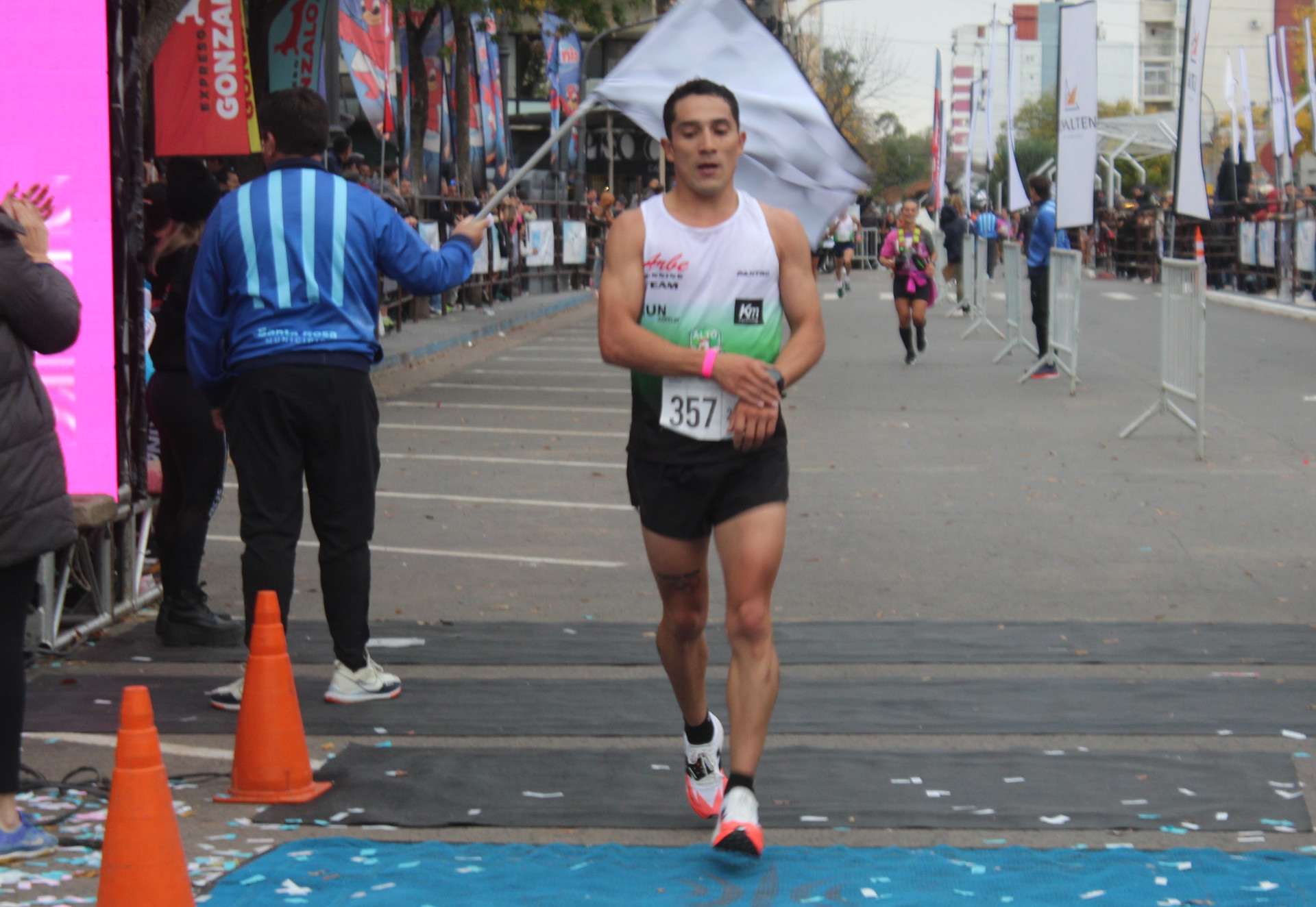 En los 21 kilómetros, que se convirtió en la competencia central por estar en juego el campeonato Argentino, se impuso Manuel Córsico con 1.03.09, seguido de Joaquín Arbes con 1.05.45 y José Alvarez con 1.05.55, en los lugares de vanguardia. Maximiliano Muñoz, el crédito local finalizó en el cuarto puesto con 1.06.45 (récord provincial).